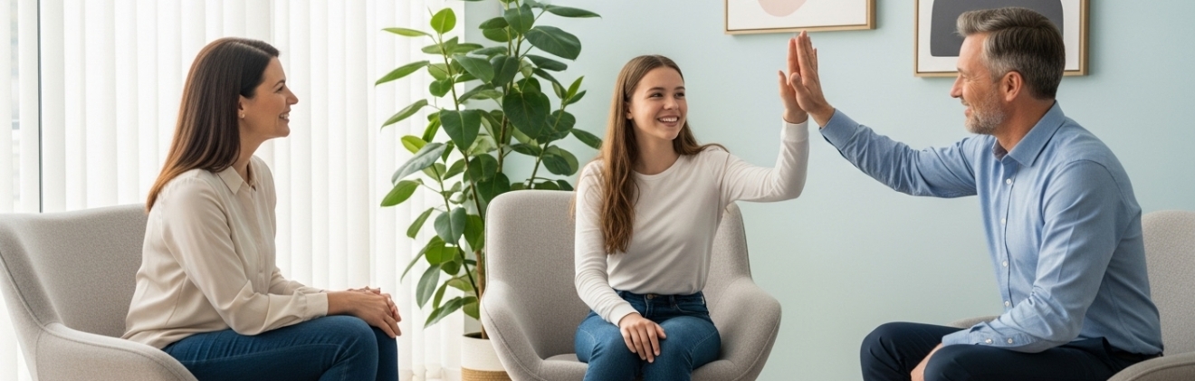 • Family Therapy: Guided sessions with a licensed clinician to address conflicts, rebuild trust, and enhance communication within the family system.
